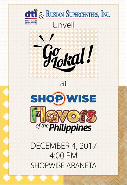 In partnership with the Department of Trade and Industry, Rustan’s Supercenter Inc opens its first Go Lokal! Store in Shopwise Araneta Center today,December 4, 2017 at 4:00 pm to 6:00 pm.